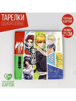 10 шт. Тарелка одноразовая бумажная квадратная "Аниме"