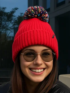 Шапка зимняя бини вязаная с отворотом из ангоры