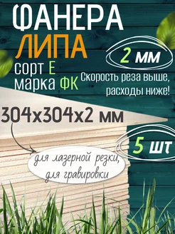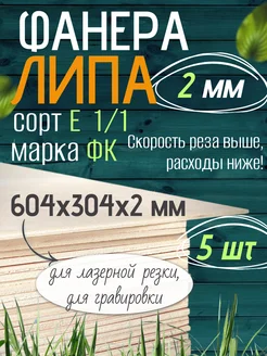Фанера 2 мм липа 604х304 мм для лазерной резки, 5 листов