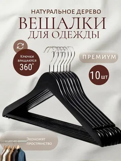 Вешалки-плечики деревянные с зажимом, набор 10 штук