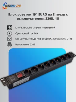 Блок розеток без шнура 8 розеток черный 19 дюймов