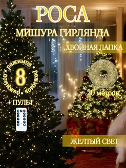 Новогодняя гирлянда роса-мишура хвойная лапа 20м