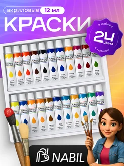 Краски акриловые набор 24 цвета в тюбиках по 12 мл