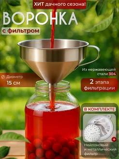 Воронка с фильтром из нержавеющей стали (15 см)
