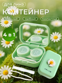 Контейнер для контактных линз с зеркалом и пинцетом