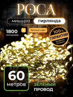 Гирлянда хвойная лапа Мишура 60м теплый свет