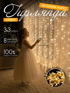 гирлянда штора хвойная лапа на окно 3x3 теплый свет