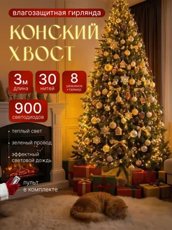 Гирлянда на елку Конский хвост 3м теплый свет
