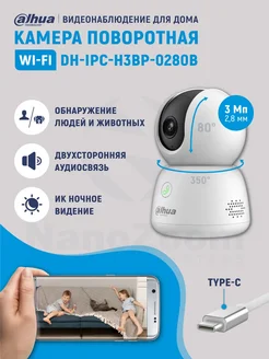 Камера видеонаблюдения wifi DH-IPC-H3BP-0280B 3Мп 2,8мм