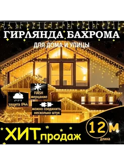 Гирлянда уличная "Бахрома" PREMIUM 12 метров жёлтый