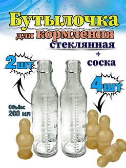 2 Бутылочки для кормления стеклянные и 4 соски
