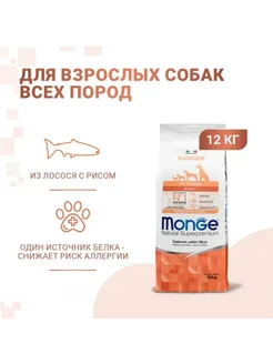 Monoprotein для собак всех пород с лососем и рисом, 12 кг