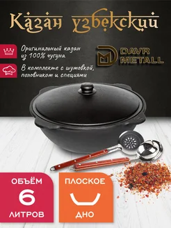 Казан чугунный 6 л узбекский с крышкой и приборами