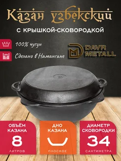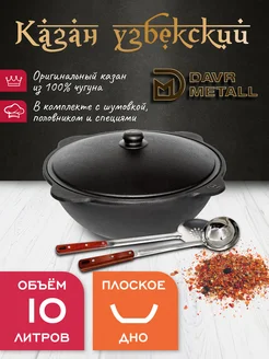 Казан чугунный 10 л узбекский с крышкой и приборами
