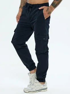 Брюки синие джоггеры карго на резинке