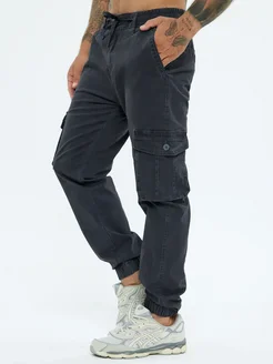Брюки серые джоггеры карго на резинке