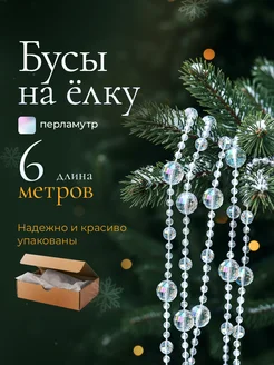 Бусы на елку 6м Перламутровые бусинки, НГ 2026
