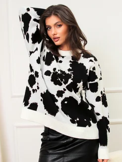 Свитер оверсайз удлиненный с принтом