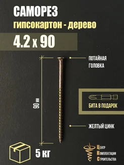 Саморез гипсокартон дерево 4.2х90, желтый цинк, 5 кг