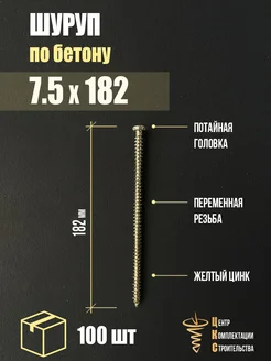 Шуруп по бетону 7.5х182, нагель, желтый цинк, 100 шт