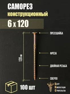 Саморез конструкционный с пресс-шайбой 6х120, 100 шт