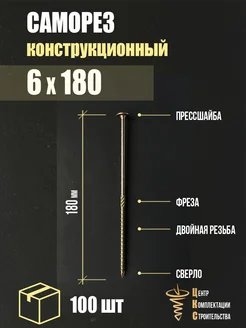 Саморез конструкционный с пресс-шайбой 6х180, 100 шт
