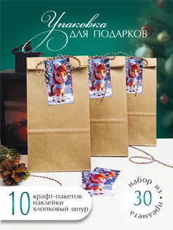 Набор упаковки Новогодних подарков крафтовые пакеты