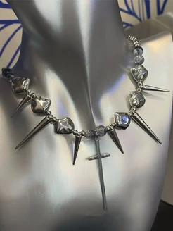 Чокер Цепочка подвеска Крест с шипами колье дрейн y2k