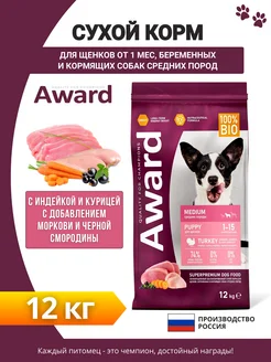 Сухой корм для щенков средних пород индейка, курица 12кг