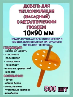 Дюбель для теплоизоляции 10х90 металлический гвоздь 500шт