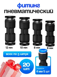 Фитинг пневматический прямой набор 6мм,8мм,10мм, 12мм