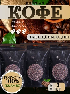 Кофе в зёрнах 100% Робуста "ДЖАМБО" 3КГ