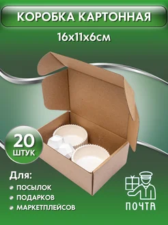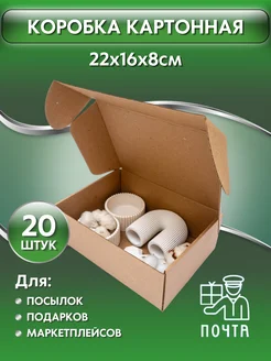 Коробка картонная самосборная гофрокороб 22х16х8 см, 20 шт