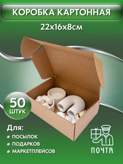 Коробка картонная самосборная гофрокороб 22х16х8 см, 50 шт