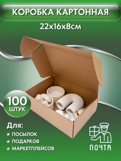 Коробка картонная самосборная гофрокороб 22х16х8 см, 100 шт