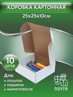 Картонные самосборные коробки 25x25x10 см,белые, 10 шт