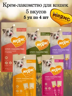 Крем-лакомство для кошек 5 вкусов, 5 уп по 4 шт