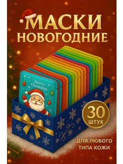 Маска для лица тканевая новогодние подарки набор 30 шт