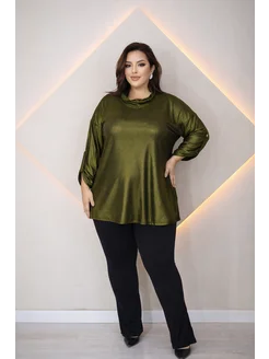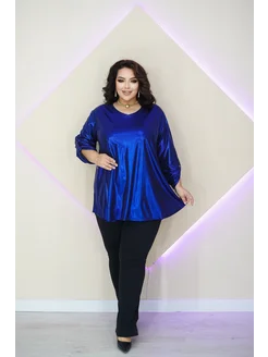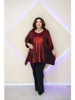 Женская блузка туника блестящая больших размеров