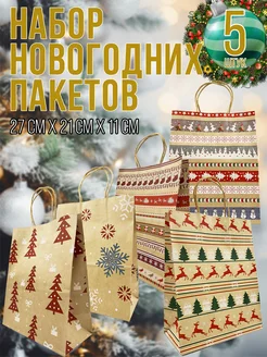 Подарочный пакет новогодний крафт бумажный набор 5 штук