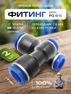 Прямой универсальный быстросъемный фитинг для трубки 8 мм
