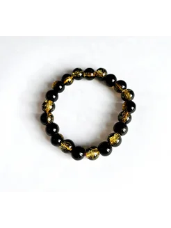 Браслет Сахарный кварц черно-золотой из натуральных камней