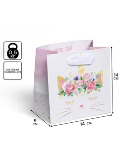 Пакет ламинированный малый, «Кошка‒единорожка», 14х14х9 см