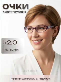 Очки для зрения +2.00 корригирующие стеклянные линзы