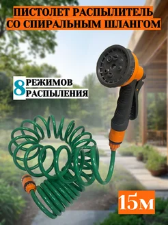 Пистолет распылитель поливочный со спиральным шлангом 15м