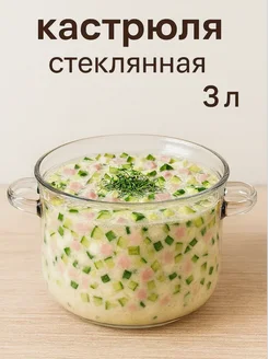 Кастрюля стеклянная термостойкая с крышкой, 3 л