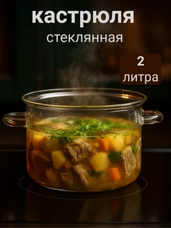 Кастрюля стеклянная термостойкая с крышкой, 2 л