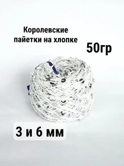 50гр королевские серебристые пайетки 3 и 6мм на хлопке
