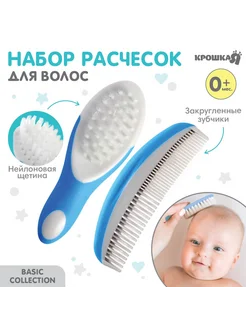 Расчёска детская, массажная щётка для волос в наборе, голубо