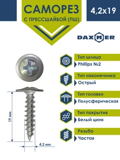 Саморез 4,2х19 c прессшайбой острый цинк (1кг ~ 500 шт)